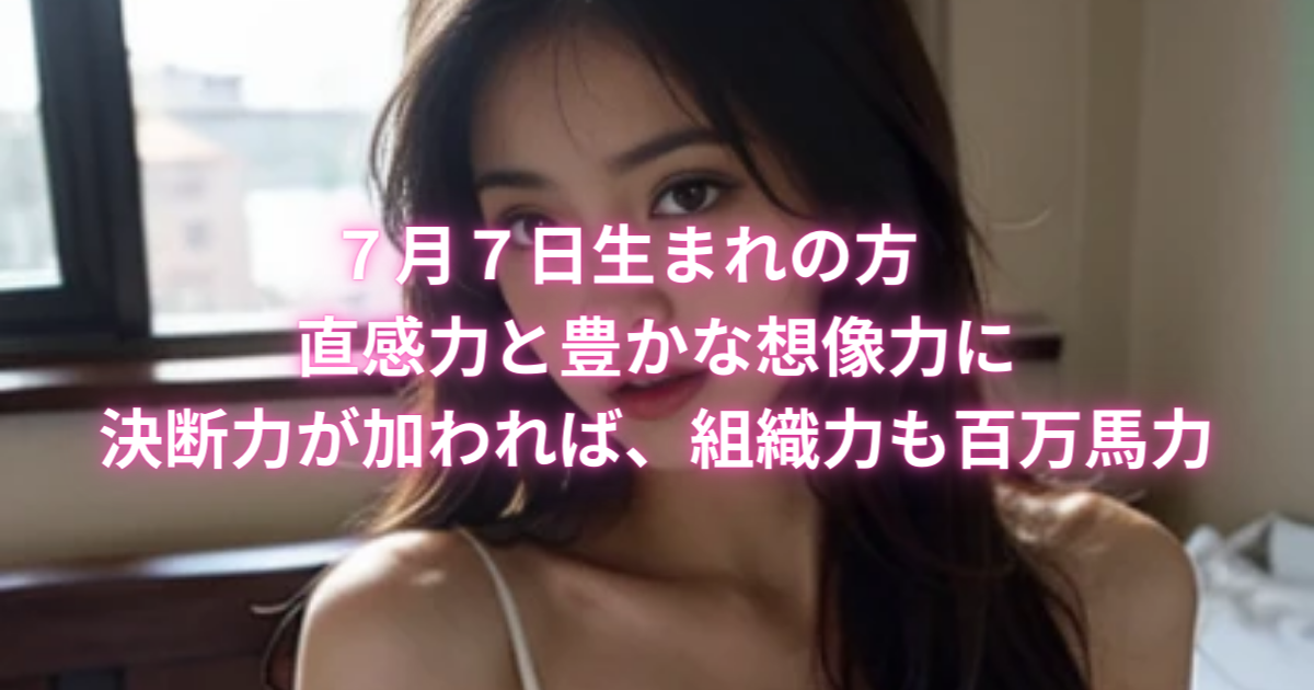 この日に生まれたあなたは、強い意志と決断力、そして生産力を持ち合わせています。かに座の特徴である優れた直感力と豊かな想像力も、あなたの大きな魅力です。あなたの価値観と物への執着は、経済的安定を非常に重視していることを示しています。